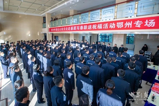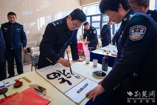 荊楚網(wǎng)(湖北日報網(wǎng))訊(通訊員 王廳 張宏斌)迎春納福送春聯(lián),翰墨飄香暖警心。1月23日上午,省廳政治部、湖北公安文聯(lián)組織全省公安機(jī)關(guān)書法藝術(shù)家走進(jìn)鄂州市公安局,開展寫春聯(lián)送祝?;顒?。