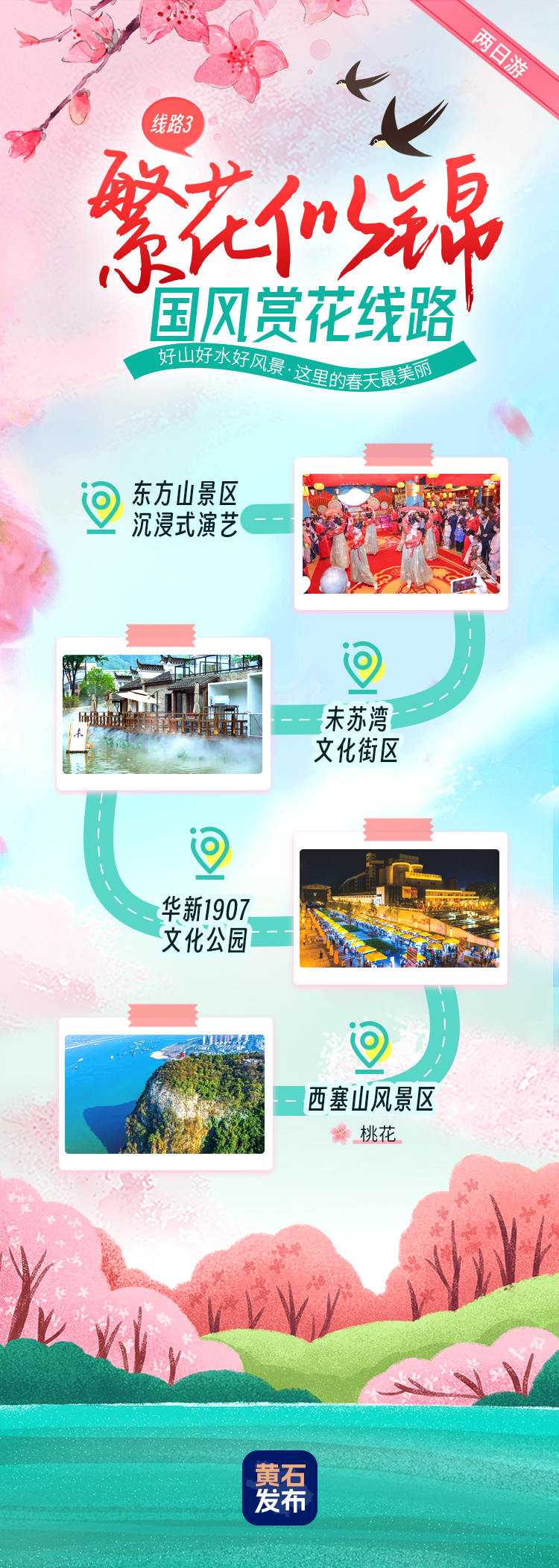 東方山景區(qū)沉浸式演藝-未蘇灣文化街區(qū)-華新1907文化遺址公園-西塞山風(fēng)景區(qū)。