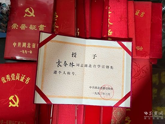袁春林部分獎(jiǎng)狀證書(shū)。阮瓊 攝