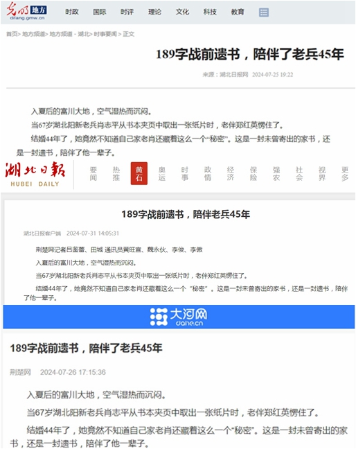 連日來(lái),《189字戰(zhàn)前遺書(shū),陪伴了老兵45年》的故事也在不斷升溫,獲得省內(nèi)外多家媒體密集關(guān)注。