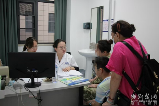 在診室坐診的便是武漢協(xié)和醫(yī)院金銀湖院區(qū)兒科負責(zé)人蔡馥丞副教授和黃石市第二醫(yī)院兒科副主任張芷銘。在診室門前,前來就診人員排起長隊,許多家長眉頭緊皺,臉上寫著同一個疑問:我的孩子怎么了?
