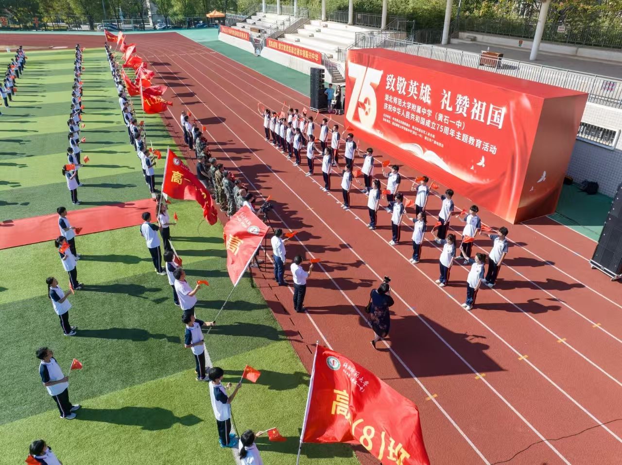 9月29日上午,國慶節(jié)臨近,“致敬英雄 禮贊祖國”——湖北師范大學(xué)附屬中學(xué)(黃石一中)慶祝中華人民共和國成立75周年活動(dòng)舉行。活動(dòng)通過走一次紅地毯、唱一首主題歌、獻(xiàn)一束手捧花、送一本報(bào)道集等形式,致敬為共和國無私奉獻(xiàn)的英雄們。