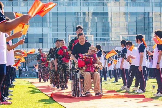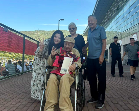荊楚網(wǎng)(湖北日?qǐng)?bào)網(wǎng))訊(記者呂鑒蕾、通訊員黃旺宣、范晨熠、李?。?月29日,湖北師范大學(xué)附屬中學(xué)(黃石一中)操場,當(dāng)98歲的老兵由家人推著輪椅,緩緩走上紅地毯時(shí),現(xiàn)場爆發(fā)出雷鳴般的掌聲。