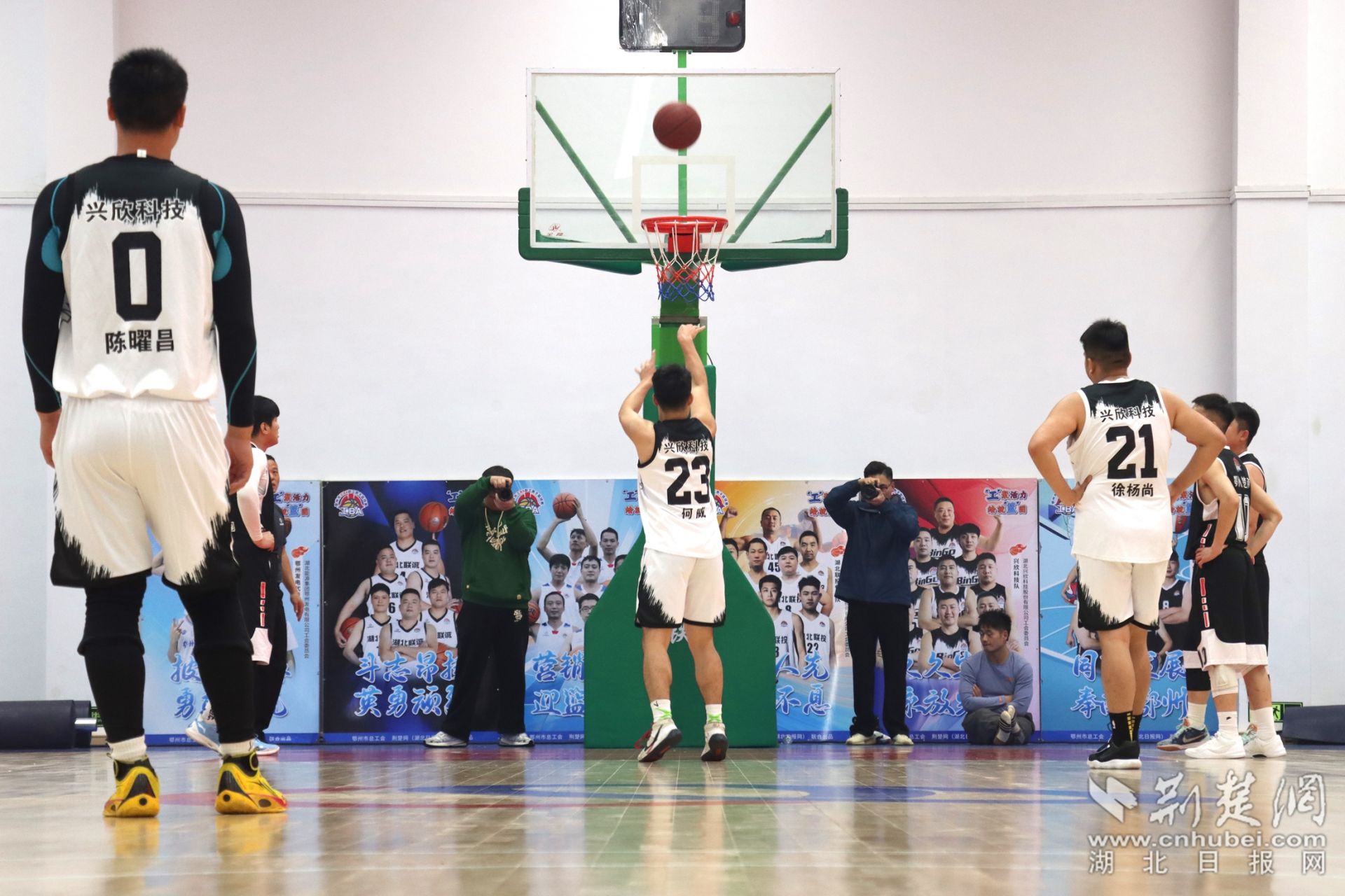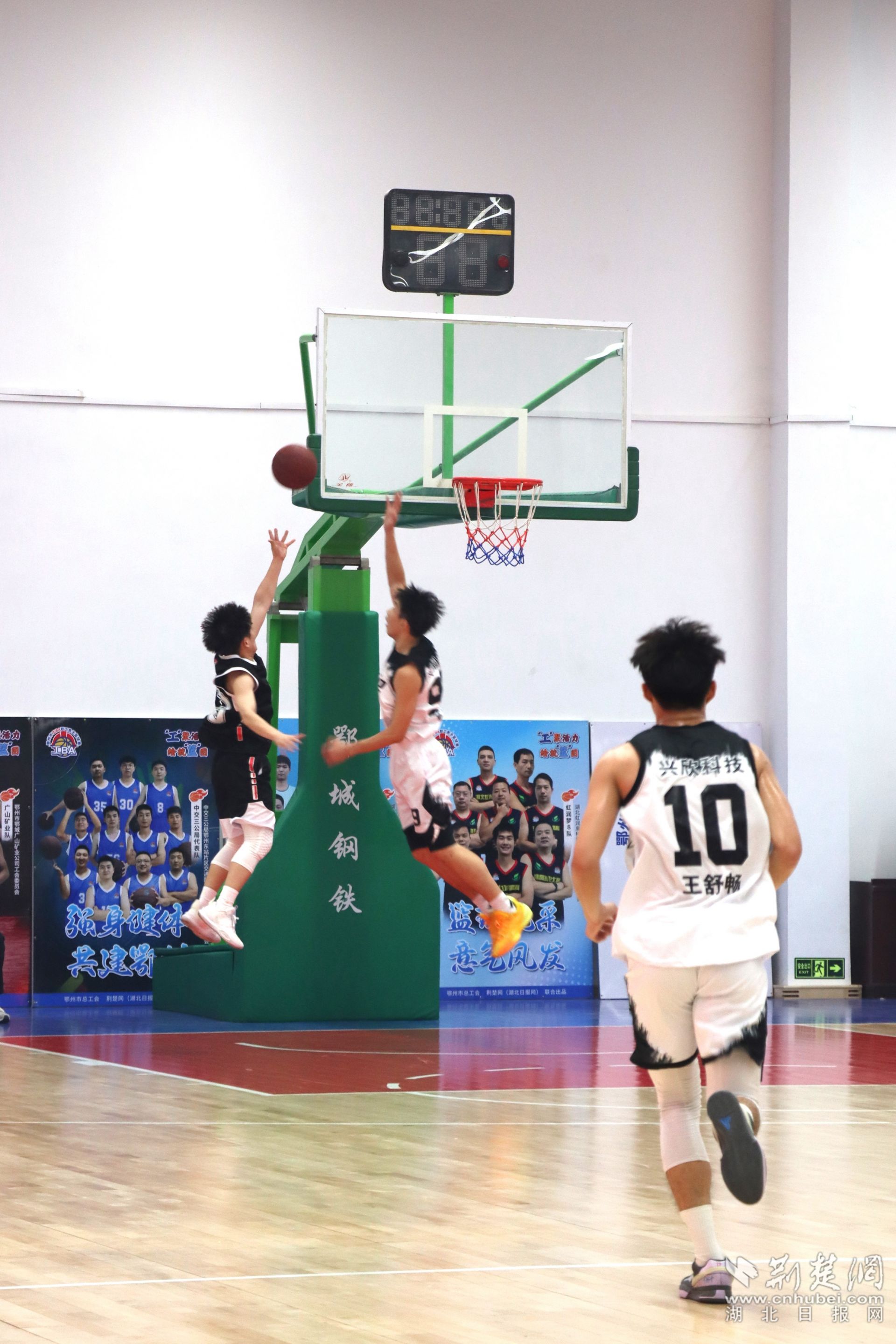決賽現(xiàn)場(chǎng),人聲鼎沸。隨著裁判員的一聲哨響,鄂州楚商隊(duì)與興欣科技隊(duì)的冠軍爭(zhēng)奪打響。賽場(chǎng)上,球員們身姿矯健、配合默契,傳球、跳投、攔截,進(jìn)攻防守轉(zhuǎn)換迅速。