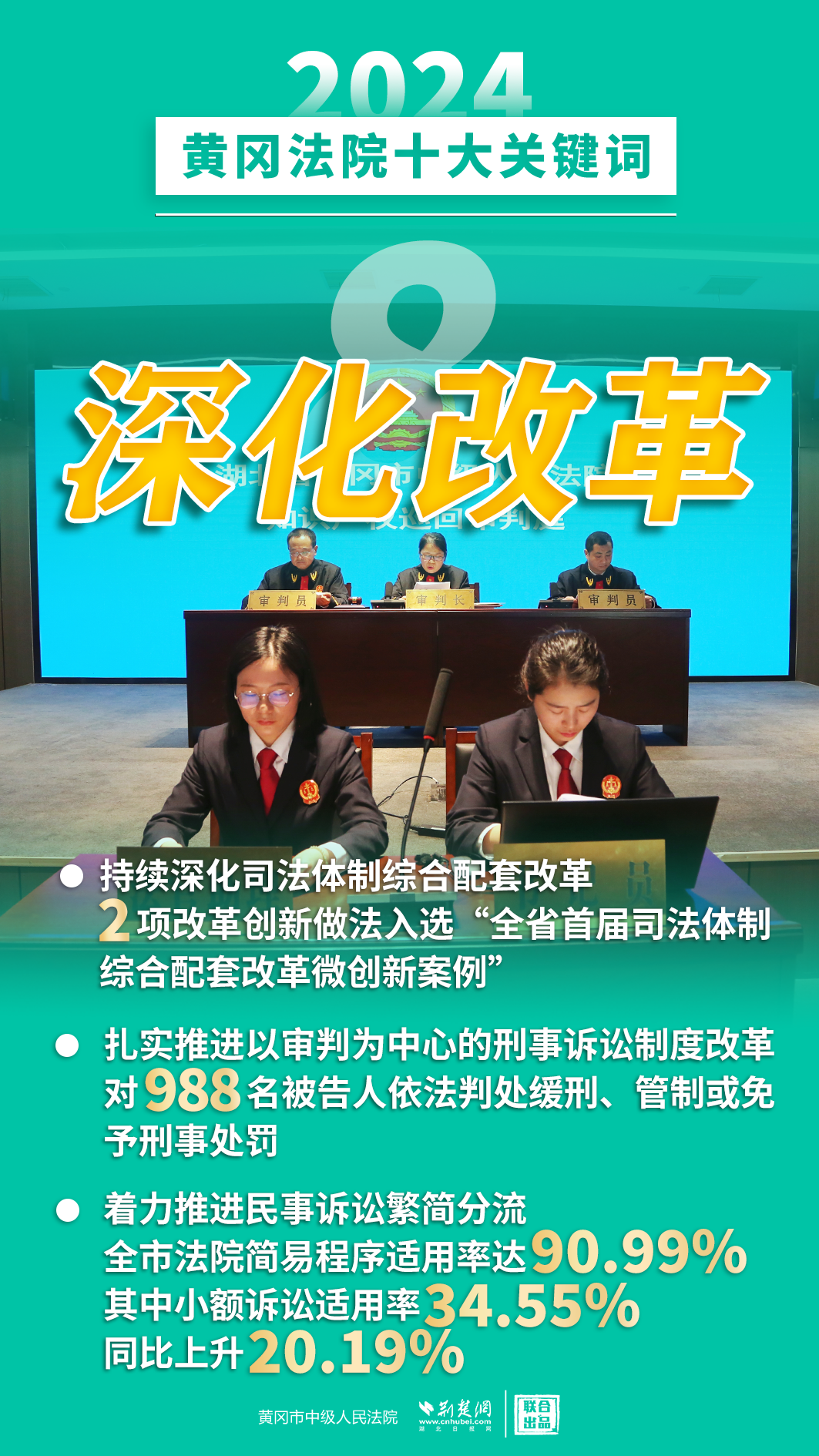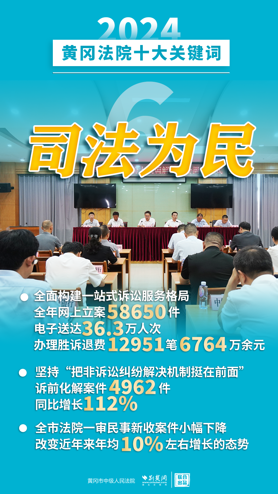 2024年,黃岡法院深入學(xué)習(xí)貫徹黨的二十屆三中全會精神,認(rèn)真落實(shí)黨中央決策部署和省委、市委工作要求,忠誠履職、擔(dān)當(dāng)作為,著力護(hù)航經(jīng)濟(jì)高質(zhì)量發(fā)展、助推社會高效能治理、守護(hù)群眾高品質(zhì)生活,各項(xiàng)工作取得新發(fā)展、實(shí)現(xiàn)新突破。