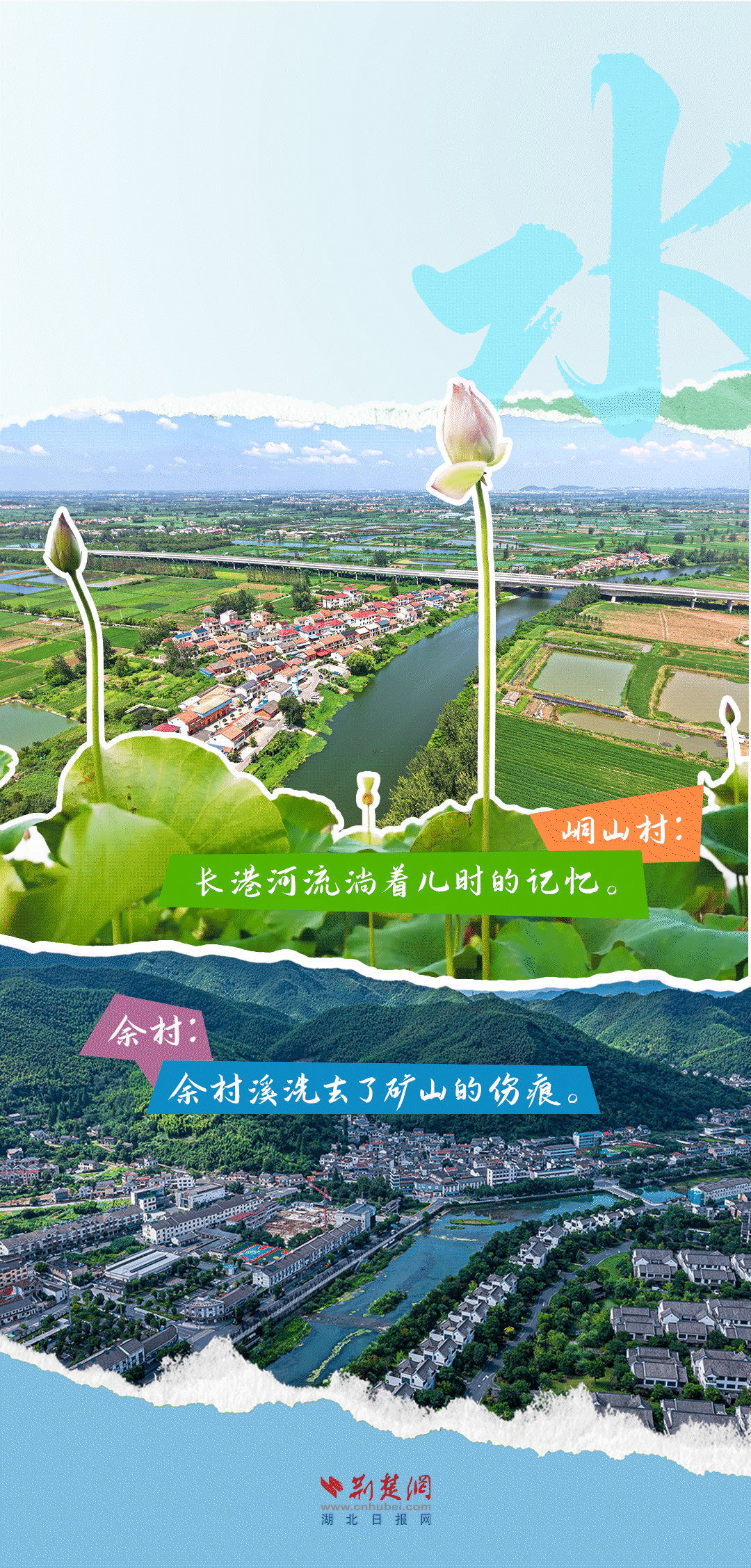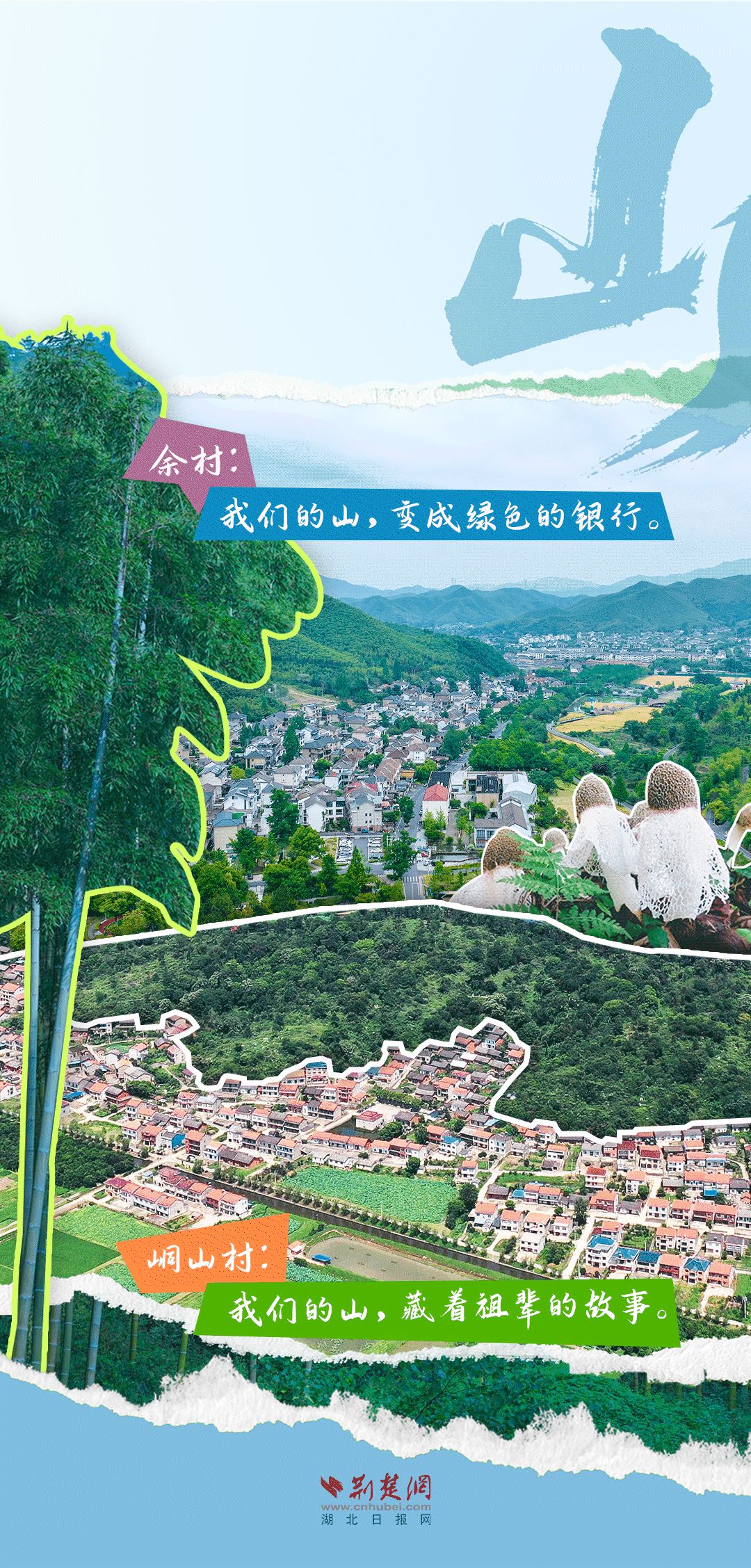 今天,荊楚網(wǎng)(湖北日?qǐng)?bào)網(wǎng))推出創(chuàng)意海報(bào)《留得住綠水青山,記得住美麗鄉(xiāng)愁——湖北峒山村與浙江余村的對(duì)話》,展示中國(guó)鄉(xiāng)村的美麗畫卷。