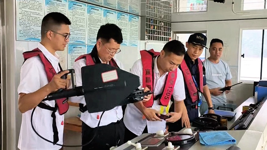 此外,無(wú)線電技術(shù)人員攜帶專業(yè)便攜移動(dòng)監(jiān)測(cè)設(shè)備,對(duì)臨江坪待閘錨地區(qū)域開(kāi)展水上移動(dòng)電磁環(huán)境監(jiān)測(cè);檢查船舶甚高頻電臺(tái)(VHF)等無(wú)線電設(shè)備,核查設(shè)備是否取得型號(hào)核準(zhǔn),檢測(cè)設(shè)備發(fā)射的無(wú)線電頻率、帶寬等技術(shù)參數(shù),排查通信安全隱患。