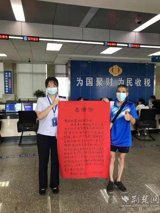 荊楚網(wǎng)(湖北日?qǐng)?bào)網(wǎng))訊(通訊員 陳利華)“你們這種滿腔熱情的工作態(tài)度和極端負(fù)責(zé)的作風(fēng)實(shí)在令人欽佩,我向你們表示萬分感謝!” 9月24日一大早, 60多歲的謝國良老人給黃石市西塞山區(qū)稅務(wù)局送來一張手寫的感謝信。