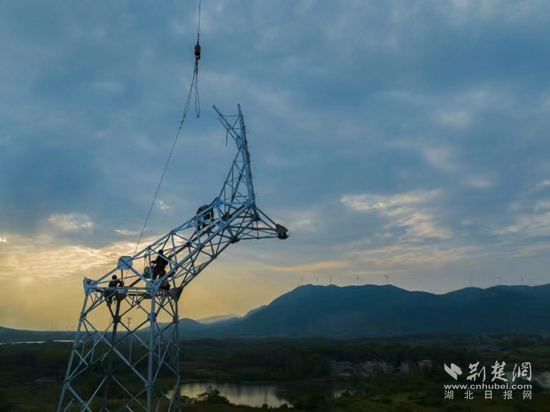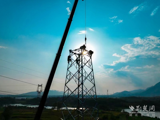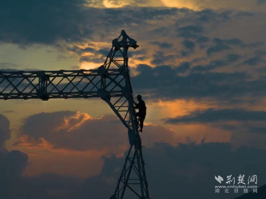 荊楚網(wǎng)(湖北日?qǐng)?bào)網(wǎng))訊(通訊員曹祥魁 袁勝)8月23日下午5點(diǎn),黃石陽(yáng)新縣陶港鎮(zhèn)祠堂畈附近,40多米高鐵塔上4名電力工人渾身濕透,他們扶著頭頂上吊車吊過(guò)來(lái)的鐵部件,開(kāi)始了最后“一吊”的組塔工作。