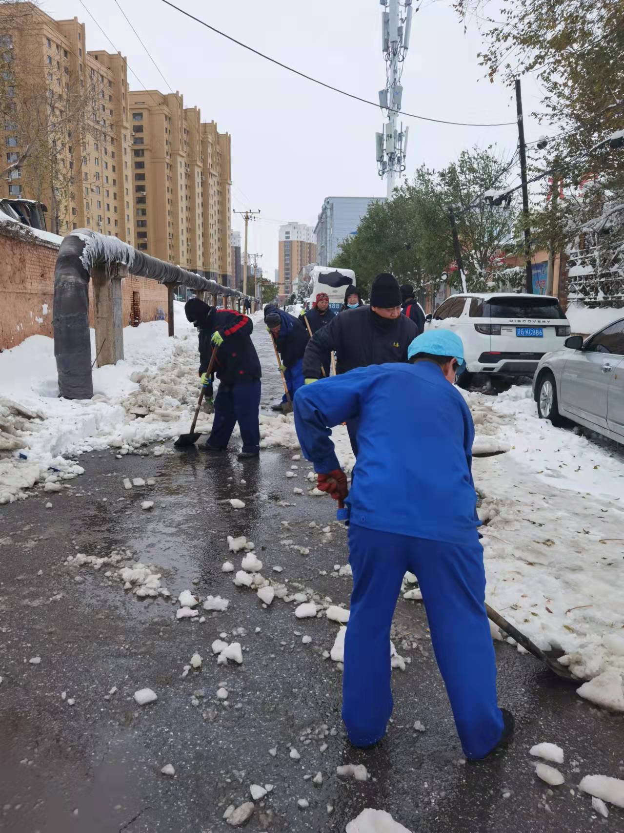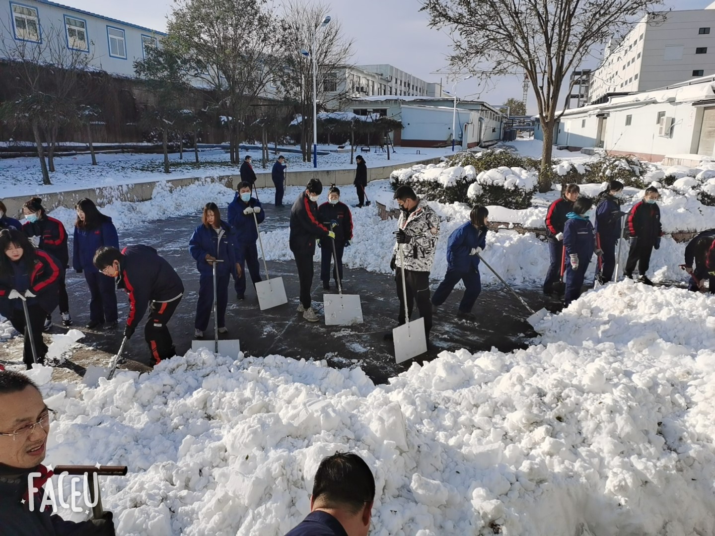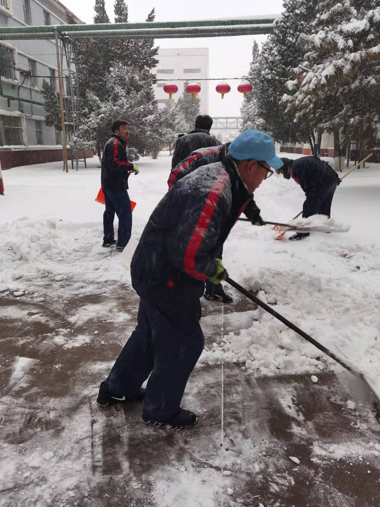 初雪是景,除雪是情。落雪無(wú)聲,洗盡鉛華。最美的不是下雪天,而是大家一起努力奮斗的身影。九泰人的辛勤汗水在寒冬揮灑,別樣的青春在雪中閃光。大家的歡聲笑語(yǔ)在白茫茫的雪地里漸漸消散,掃雪任務(wù)圓滿完成!