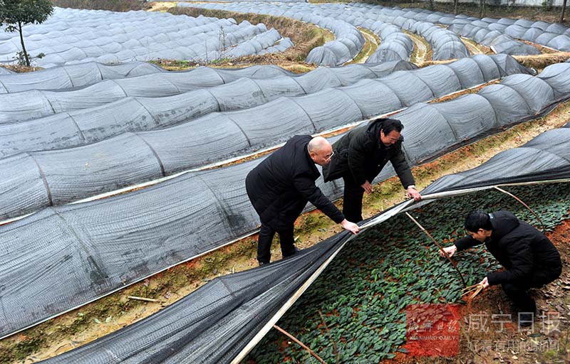 昨日,通城縣雋水鎮(zhèn)利和村興農(nóng)茶藥果苗良種場,農(nóng)技專家正在查看新育茶苗生長情況。據(jù)了解,為做優(yōu)茶產(chǎn)業(yè),該縣去冬今春新育中茶108、櫧葉齊等名茶苗30余畝600余萬株,預計今年可新增茶園2000余畝。