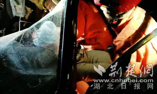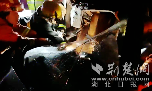 圖為消防員救出司機(jī)現(xiàn)場(chǎng)。 曾水生攝
