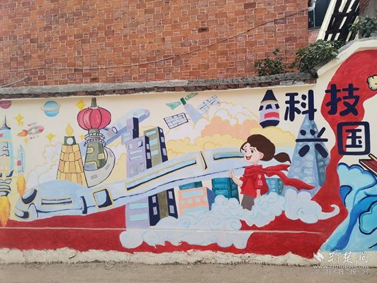 這面墻體上繪制了沐浴黨恩、運(yùn)動(dòng)強(qiáng)國(guó)、生態(tài)文明、科技興國(guó)、與黨同行、向黨向未來(lái)六大主題,其中既有充滿(mǎn)活力、朝氣和正能量的向日葵、麥穗、綠樹(shù)等植物,又有熊貓、猴子、兔子、獅子等可愛(ài)的動(dòng)物。