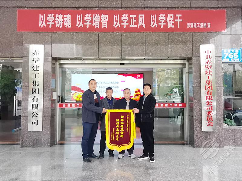 11月20日,神山鎮(zhèn)鐘鳴村村支書易正軍帶領(lǐng)村委會成員及村民代表,將一面寫著“精雕細琢展宏圖,繼往開來創(chuàng)未來”的錦旗送到赤壁建工集團,以表達他們對建工集團水建公司在該村高標(biāo)準(zhǔn)農(nóng)田改造工作中,所付出的辛勤勞動的感謝之情。