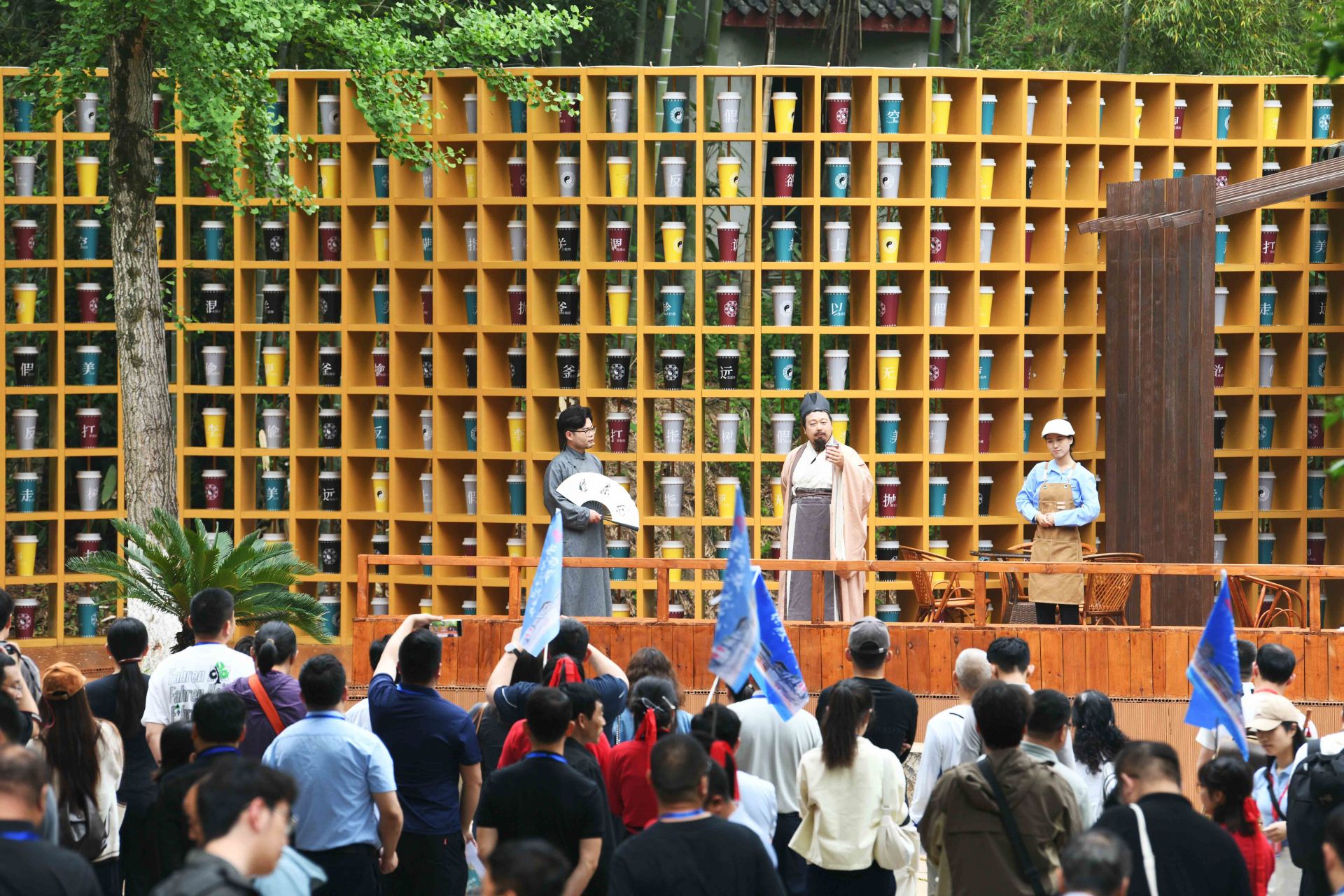 4月26日晚,三國赤壁古戰(zhàn)場景區(qū),《赤壁·借東風(fēng)》實景演藝劇全球首演。一名“說書人”用現(xiàn)代人的口吻,串起一部三國與現(xiàn)代的穿越?。何枧_上,演員、道具、光影重現(xiàn)“草船借箭”“苦肉計”“空城計”等歷史典故;看臺上,游客化身將士,隨劇情節(jié)奏拍打赤壁非遺——腳盆鼓(相傳為孫劉聯(lián)軍赤壁之戰(zhàn)鼓舞士氣的樂器)……現(xiàn)場,觀眾與演員深度融合,沉浸式體驗三國英雄氣概,仿佛一場跨越千年的對話。