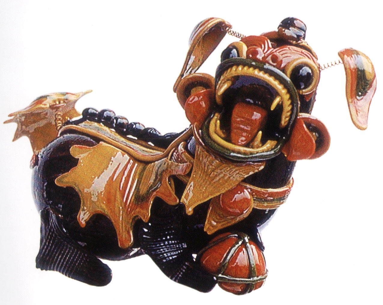 糖塑,俗稱吹糖,在湖北遍及全省,尤以天門最為突出。糖塑之所以贏得人們的喜愛,是因為它獨具特色:1、原料可塑性強:麥芽糖是糖塑的主要原料,加熱后變軟,比面塑更具可塑性,既可吹成薄而亮的各類造型,又可拉成粗細不同的糖絲。捏成不同形狀的配件,易粘且牢固;2、造型神形兼?zhèn)洌禾撬艿募妓囍饕Ψ蛟凇按怠鄙,一塊糖坯在藝人手中,邊吹邊捏,再通過搓、壓、挑、剪等手段,加上輔助的小鐵絲,少則幾分鐘,多則半小時,一件作品就完成了;3、色彩和諧醒目:麥芽糖加溫變軟加入紅、綠、黃、黑四種色素,根據需要又可調和成數十種復色,色彩響亮和諧;4、肌理變化豐富是糖塑獨具的特點:在糖塑中,附件變化萬千的肌理又與主體吹成光滑的表面形成鮮明的對比,顯得更加豐富耐看;5、“活”的部件是糖塑的又一特點:有的部件裝上自制的鋼絲彈簧,一經拿在手中,部件都“活”起來了,更具生氣。